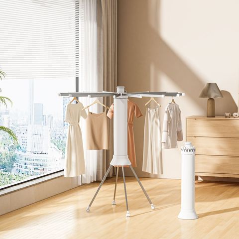 Tendedero de ropa plegable de Metal, colgador de almacenamiento portátil para el hogar con ruedas para uso en balcón o dormitorio
